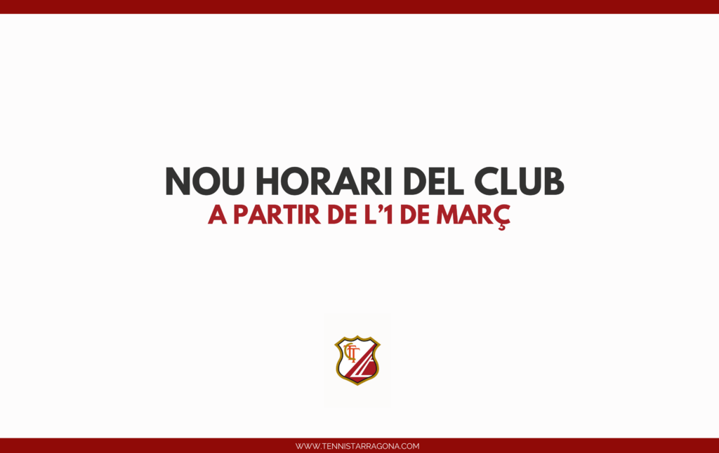 A partir de l’1 de març de 2026, el Club actualitzarà els seus horaris d’obertura amb l’objectiu d’optimitzar els recursos i garantir una gestió més eficient, responsable i sostenible de les instal·lacions. Aquesta reorganització respon a l’anàlisi del funcionament real del Club i ens permet ajustar els horaris al dia a dia, mantenint la qualitat del servei i assegurant el millor ús possible dels espais esportius. Agraïm la comprensió i la col·laboració de tots els socis en aquesta actualització, que ens ajuda a continuar construint un Club modern, equilibrat i orientat al benestar de tota la comunitat.